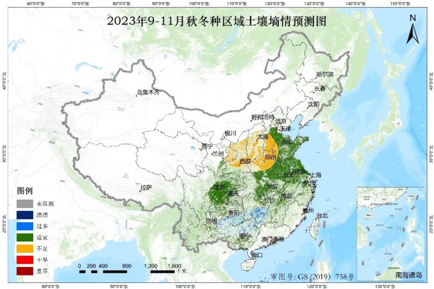 2.2023年9—11月秋冬种区域土壤墒情预测图