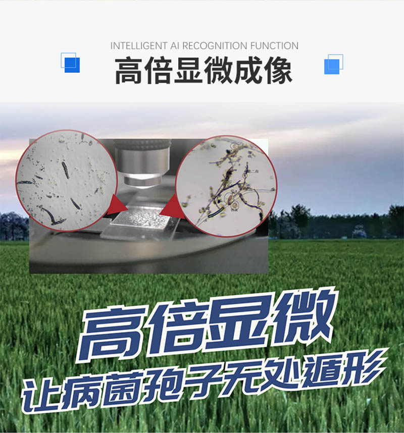 3、具有1200万像素的千倍放大显微成像系统,能够自动对所捕获病菌孢子进行高清显微拍摄,所拍摄图像清晰度能够达到人工识别病菌孢子种类的要求。