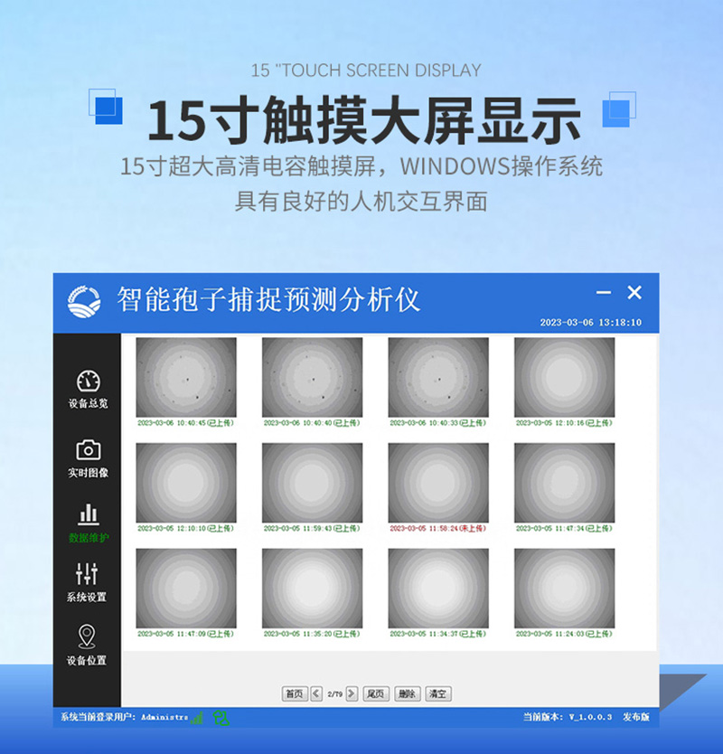 4、孢子自动捕捉、自动拍照。设备24小时无间断工作,可自动捕捉病菌孢子,对所捕获的病菌孢子自动拍摄,自动选取最优图片。