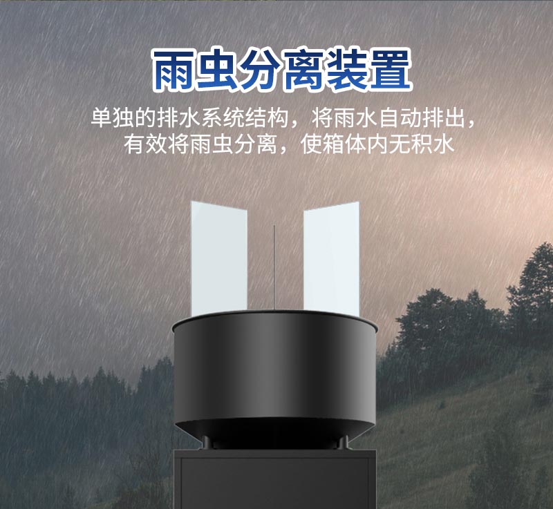 13、雨控系统装置:单独的排水系统结构,将雨水自动排出,有效将雨虫分离,使箱体内无积水。