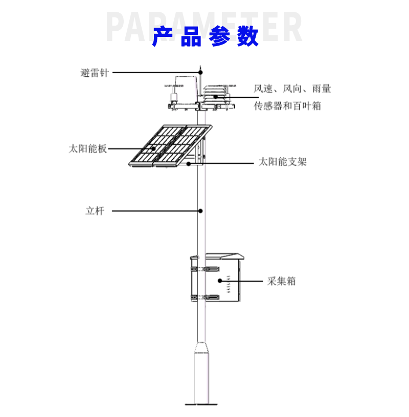 无线气象环境监测站,用于对风速、风向、雨量、空气温度、空气湿度、光照强度、土壤温度、土壤湿度、蒸发量、大气压力等气象要素进行全天候现场监测。可以通过专业配套的数据采集通讯线与计算机进行连接,将数据传输到气象计算机气象数据库中,用于统计分析和处理。主要应用于气象、农业、地质、环境等方面,并适合于野外科研试验应用。二、性能特点