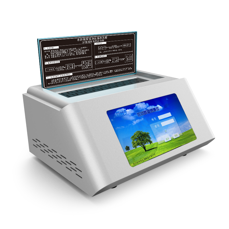 8、检测模块具有智能温控装置,自动判断环境温度并根据所选农残卡样式,自动判定并能显示最佳温度,可自动加热并恒温,保证反应在最佳稳定温度进行,检测快速简单。