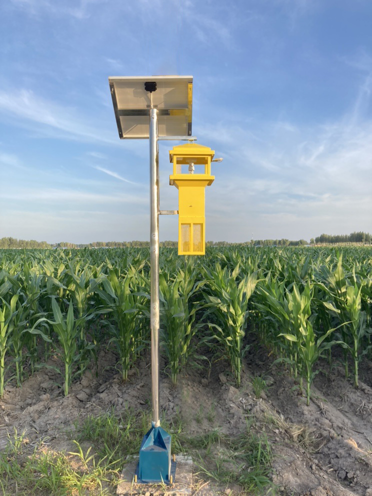 太阳能风吸式杀虫灯利用害虫趋光性、趋波性、趋色性诱捕害虫。安装使用太阳能风吸式杀虫灯后,玉米生产过程中常常遭遇的大小虫子都可以诱杀,不管是玉米螟、黏虫,飞蛾或者天牛、金龟子等体型较大的虫子。太阳能杀虫灯这种绿色防控手段能够有效杀虫,有效抵御玉米生长过程中来自虫害的侵扰,提高农产品产量和质量,减轻种植者虫害防控工作难度,而且节省农药,降低农产品农药残留威胁,也能够保护生态环境,一举多得。