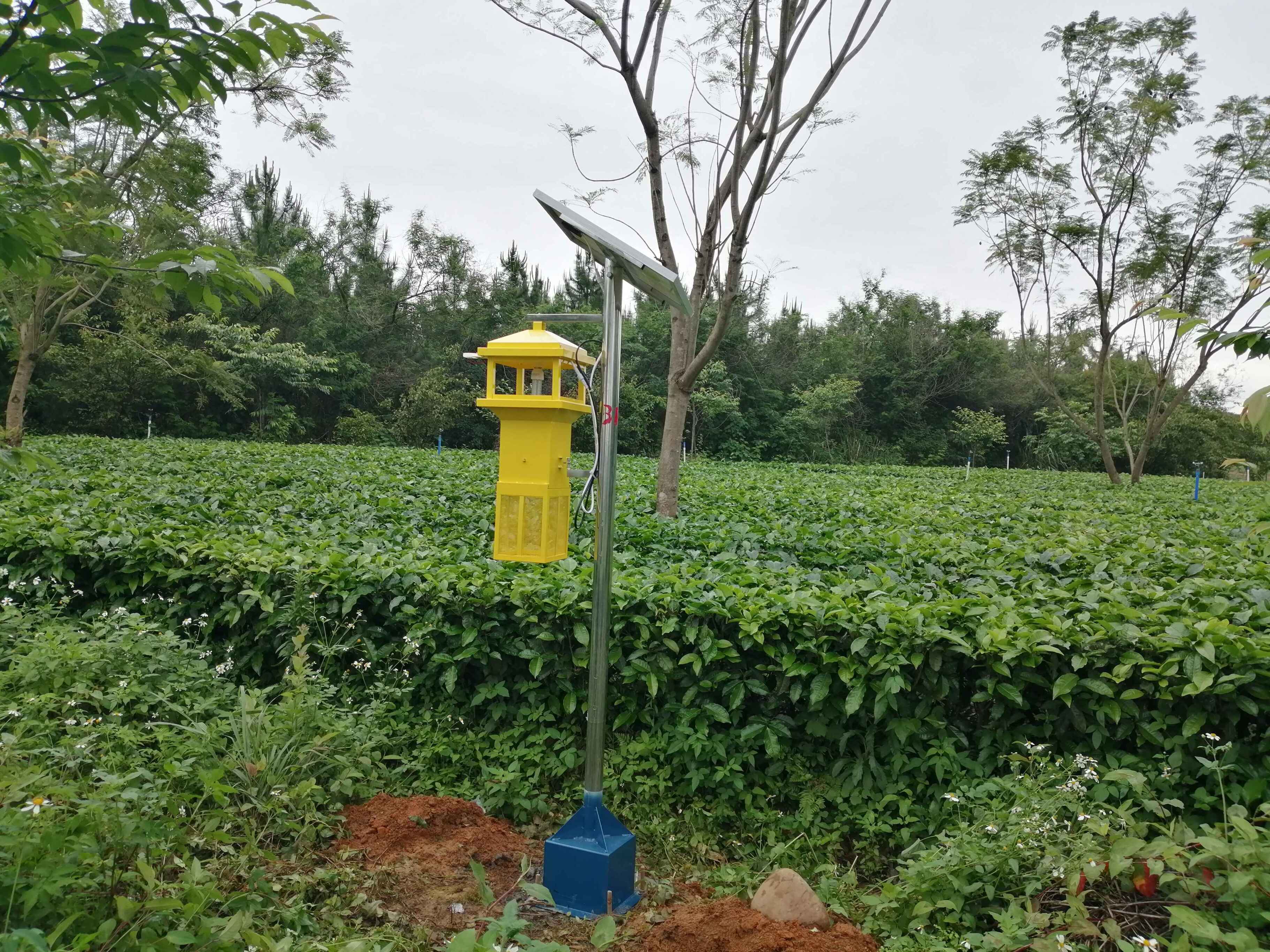 风吸式杀虫灯使用新型LED光源和风吸式杀虫设备,对光源和杀虫方式的改进,极大的提升了茶园害虫灭杀效率;突破传统杀虫灯对小的害虫毫无灭杀能力的局面,大小虫子通杀。