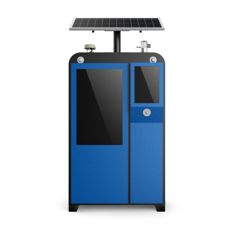 2、环境监测:标配空气温湿度传感器、风速风向传感器,可实时监测现场环境。并可通过一体机的LED显示屏进行实时无间断显示。