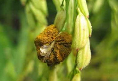 2.清除菌源与种子处理 发病初期及时摘除病粒烧毁,秋收后深耕翻埋。应避免在病田留种;若在病田留种,播种前对种子进行消毒,可先用泥水或盐水选种,清除病粒,再用1%石灰水或15%三唑酮可湿性粉剂1000倍液浸种24〜48h。